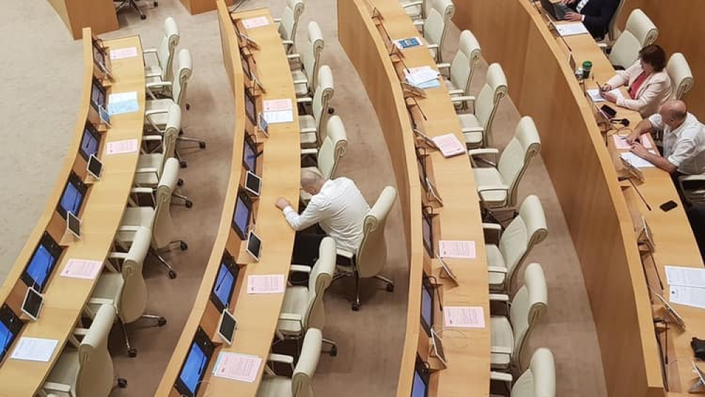 პლენარულ სხდომათა დარბაზში ენმ-დან მხოლოდ ნიკა მელია იმყოფებოდა, სხდომას არც „ევროპული საქართველოს“ წევრები ესწრებოდნენ, როგორც ოპოზიციონერები ამბობენ, მელიას ინიციატივით.
