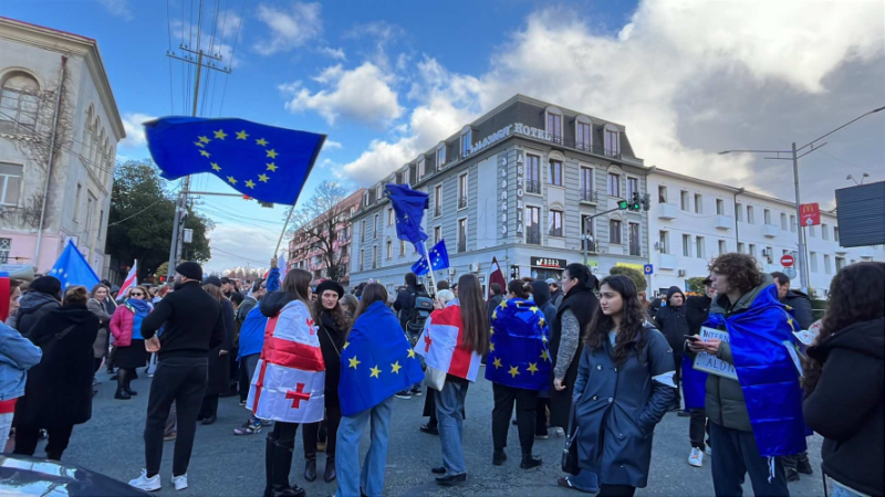 ზუგდიდში საპროტესტო აქციის მონაწილეები სამხარეო ადმინისტრაციის შენობიდან მსვლელობით დაიძრნენ ქალაქის ქუჩებში.