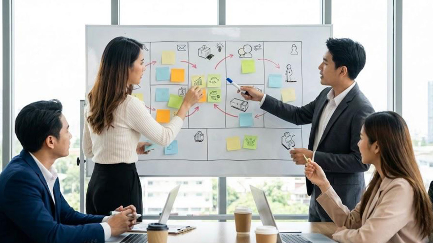 ბიზნეს მოდელის შემუშავება ეტაპობრივი პროცესია, სადაც იდეა რეალურ, გასაყიდ და ფინანსურად მდგრად სისტემად ყალიბდება. პრაქტიკაში, სწორად დალაგებული მიდგომა ასეთ ნაბიჯებს მოიცავს:
