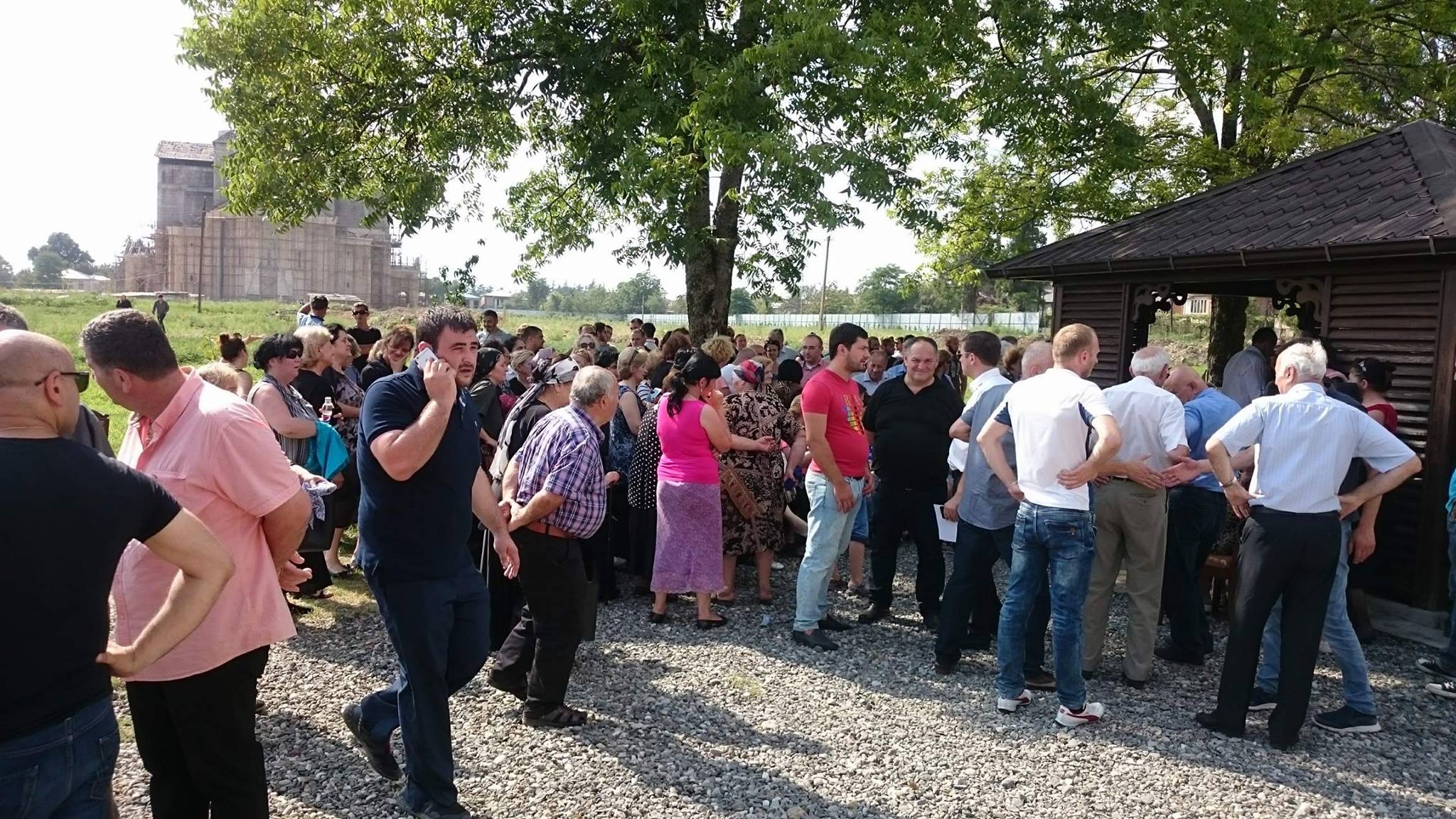 ტაძრის ეზოში, მეუფეს რეზიდენციის შენობის წინ შეგროვილი მრევლი