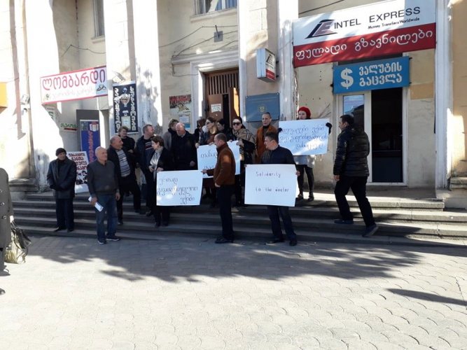 ადვოკატთა ასოციაციის წევრებმა ზუგდიდში ვაჟა გაფრინდაშვილის მხარდასაჭერი აქცია გამართეს. ისინი დაკავებული ექიმის გათავისუფლებას ითხოვენ და ამბობენ, რომ საოკუპაციო ძალების მიერ მისი დაკავება ბარბაროსობაა.
