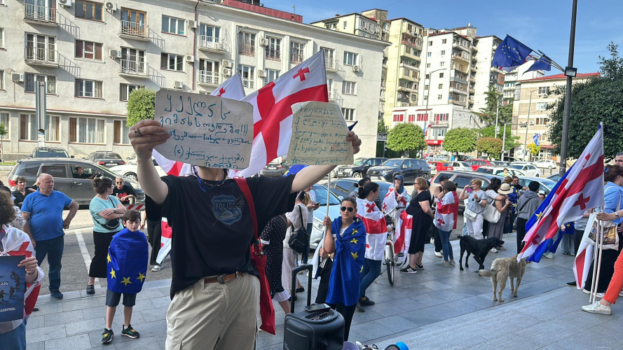 ზუგდიდის მერიასთან "აგენტების" კანონის საწინააღმდეგო აქცია დაიწყო.