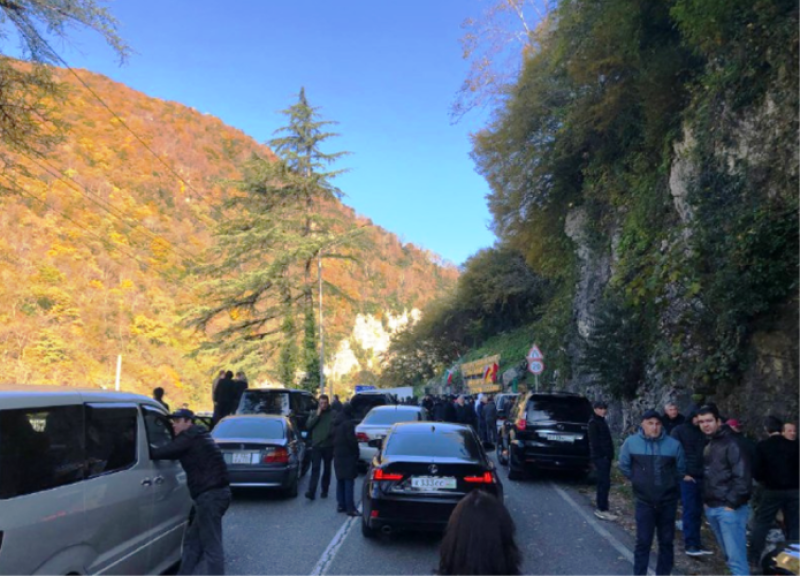 პროტესტის მონაწილეები 5 აფხაზი ოპოზიციონერის გათავისულფლებას ითხოვენ. ისინი სამართალდამცავებმა მაშინ დააკავეს, როდესაც აქტივისტები ბრუნდებოდნენ გუდაუთიდან, სადაც საზოგადოების შეკრება ჩატარდა მოსკოვსა და სოხუმს შორის ახლახან ხელმოწერილი „საინვესტიციო საქმიანობის შეთანხმების“ განსახილველად. მათ დაკავებას ახლობლების და მხარდამჭერების საპროტესტო აქცია და ავტომაგისტრალის გადაკეტვა მოჰყვა.